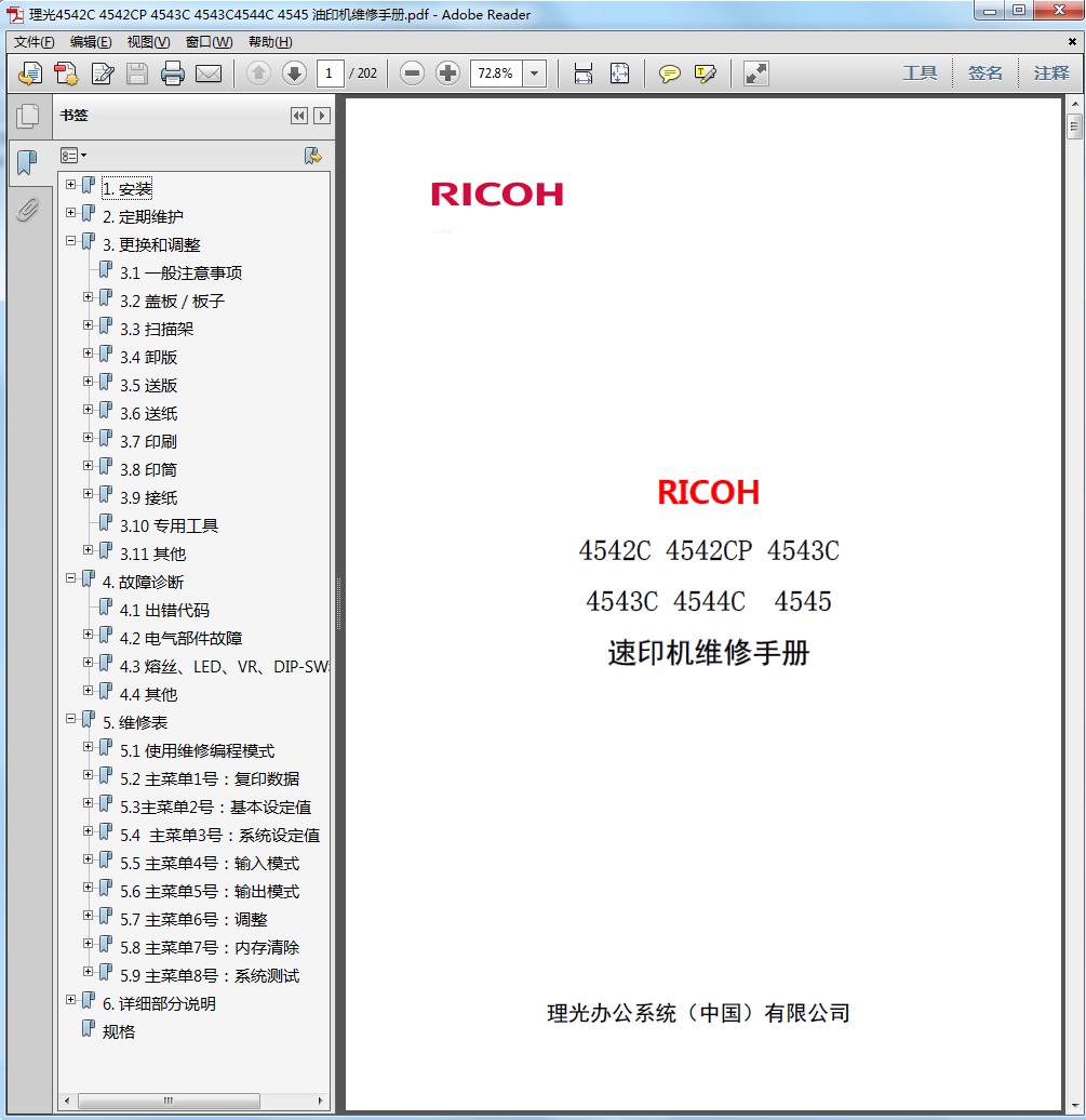 理光Pro C9200 ,C9210中文维修手册全