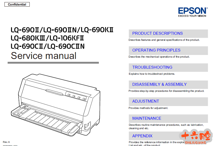 爱普生针式打印机LQ-106KF2_LQ-690K2_LQ-680K3英文维修手册(Ver. A) LQ-106KFII;LQ-680KIII;LQ-690KII