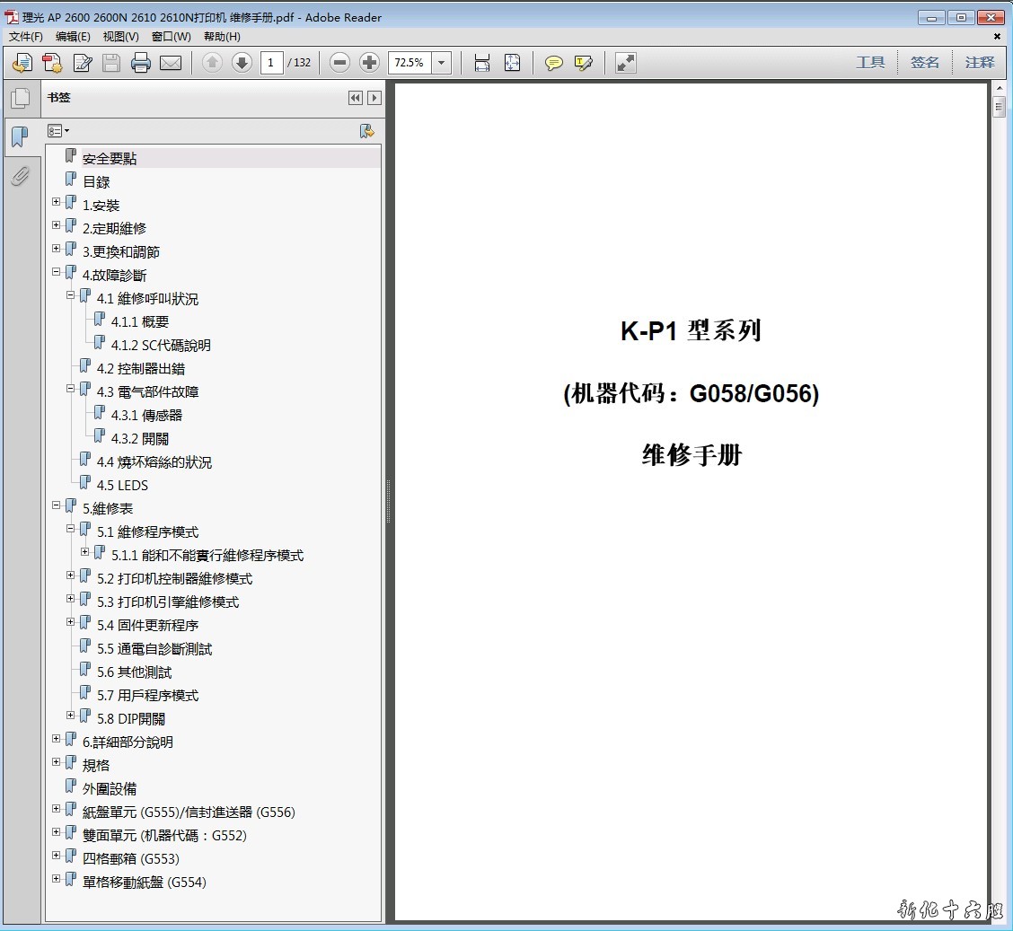 理光AP2600 2600N 2610 2610N 打印机中文维修手册