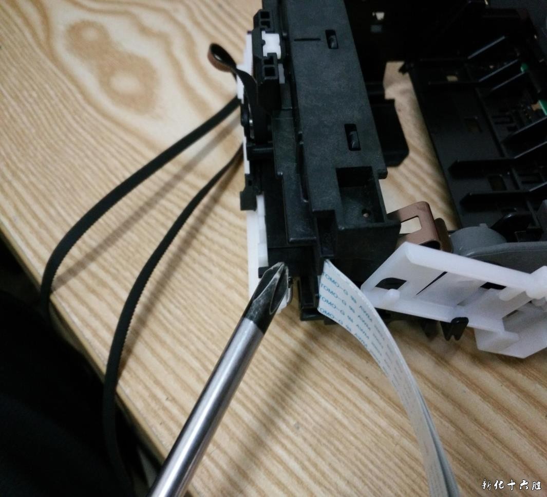 处理过程: 通过查维修手册报B200问题是VH监视器错误,首先把打印头取下重新开机,机器可以启动,确定打印头肯定是坏了。拆下机器检测主板和小车没有明显烧坏,凭以往经验,像报B200错的问题,更换新的打印头就可以了。可是这台机器更换一个新的打印头后还是报B200,故障依旧。再次更换一块主板,还是一样的问题,最后更换一个小车和打印头问题解决。仔细检查小车笔架,发现小车头的线缆断。