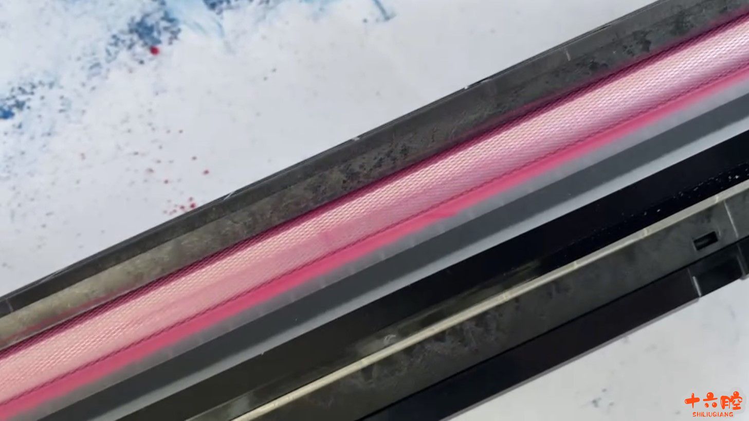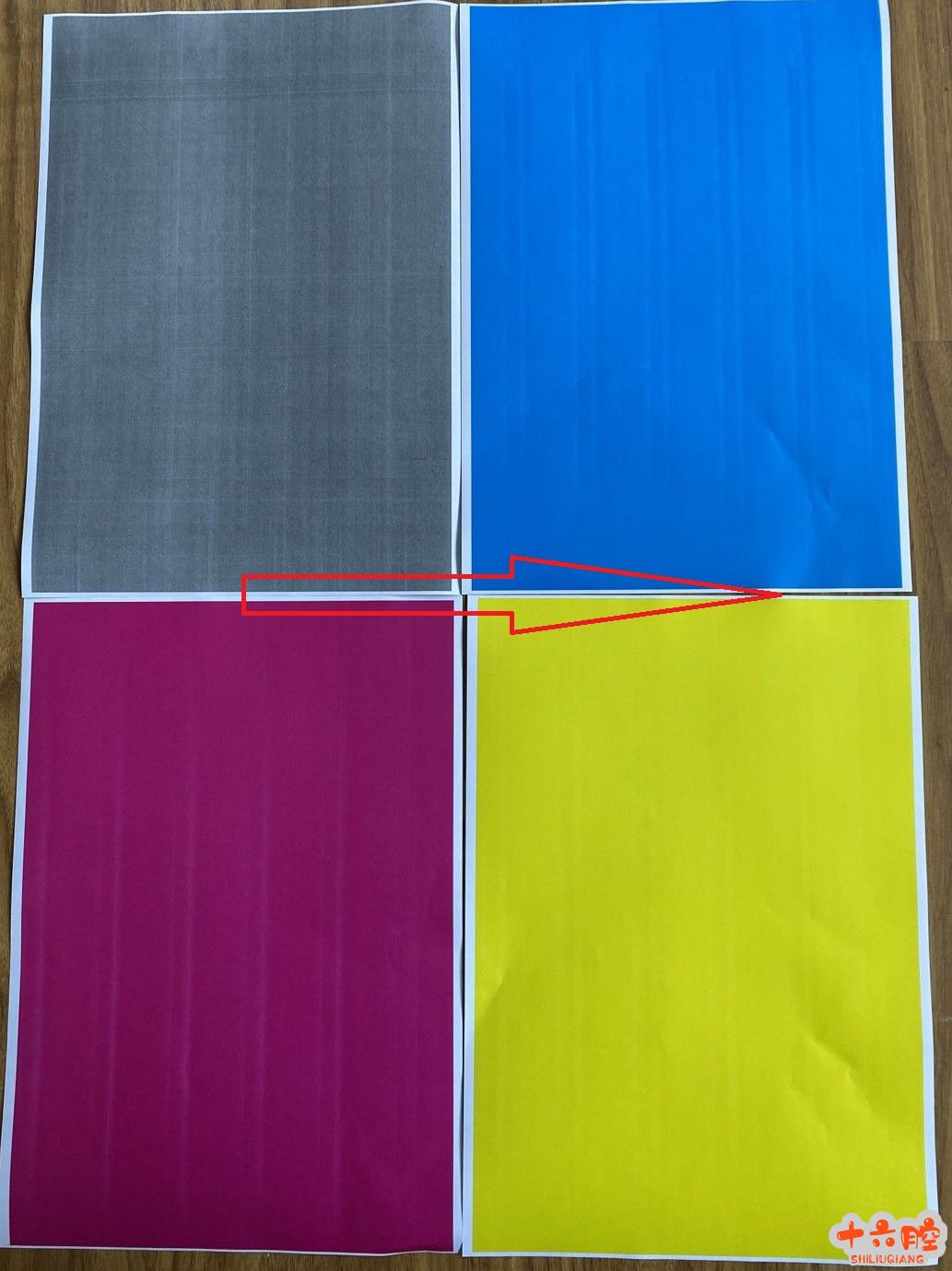症状 MC2000垂直送纸方向打印图像出现白条,四种纯色全点样图都有此现象。见图(一),红色箭头标注送纸方向。
