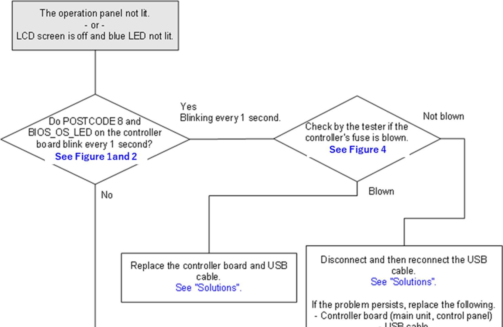 出现SC672 (控制板启动错误)报告 概述 智能操作面板通过USB 数据线和线束与控制器通信。检测到智能操作面板和控制器之间的通信故障时,将显示SC672。 如果在智能操作面板关闭时出现SC672,请按照此步骤处理问题。 智能操作面板框图 [A]: USB 数据线 [B]: 线束 [C]: DIMM [D]: LED [E]: 定影