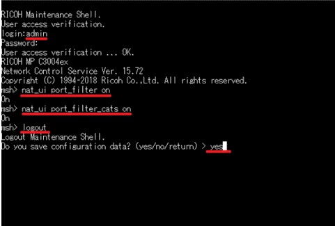 维修过程在智能面板与MFP控制器进行通讯时使用了一些端口,同时对外部网络开放,造成进行安全扫描时出现警告。出于安全原因,可以关闭这些端口。