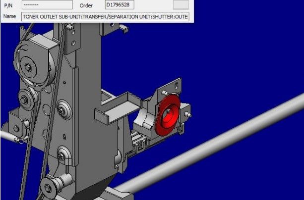 症状:客户反馈打印A3 大纸条码不干胶的时候靠近机器后面走纸方向露白, 纸尾右上角更严重 原因: 现在测试客户的 A3 不干胶打印全黑,发现就是客户描述的靠近机器后 方的走纸方向的发白,纸尾那边更加严重。 用铜版纸 A3 纸测试后发现露白位 置会发生变化,有些在靠前盖走纸方向露白,有些靠近后盖走纸方向局部露 白,同时测试 A4 纸短边进纸靠近机器后盖方向也同样露白。 经过测试后归纳 总结,问题如果出在 PCDU 的话应该 A4 短边进纸不会露白,应该问题出在二 次转印这块,更换 ITB 单元,二转组件,整个纸路大抽屉,故障没有变化。把 二转驱动马达组件和正常机器对调后故障依旧。 和客户了解出故障背景,前一 日客户发现二转组件排粉口赌塞,有异响,二转组件排粉口塑料卡在机器内 部,客户自行取出来后安装在二转组件上。结合以上情况,观察机器内部二转 废粉接口,感觉有个塑料异常,和正常机器对比,正好旋转了 180 度,重新调整了角度后测试全黑正常。 解决方案: 本故障因为不同宽度的纸测试都有走纸方向发白,那说明和 PCDU 部分无关,问题应该出在二次转印这块,初步怀疑可能是二转组件和 ITB 单元 的高度发生变化造成,但是更换了二转组件和整个抽屉后,ITB 单元后都不能 解决问题,这时候需要从机器内部下手,影响二次转印组件高度的配件有哪 些,逐一排查,同时从客户哪里了解机器出故障的背景情况看受否有新线索。 以下图是打印全黑效果图和机器内部塑料装反的零件图