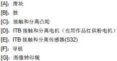 A两边滑块推动产生负载出现故障 解决方案 拆装ITB单元上推动转印辊机构进行清洁和修正位置,机器正常。 |