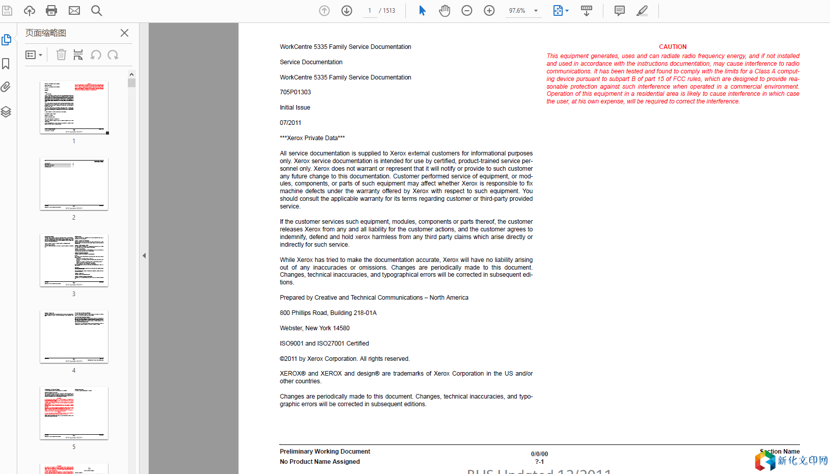 WorkCentre 5335 Family 手册格式:pdf手册语言:英文手册页数:1513文档大小:17M