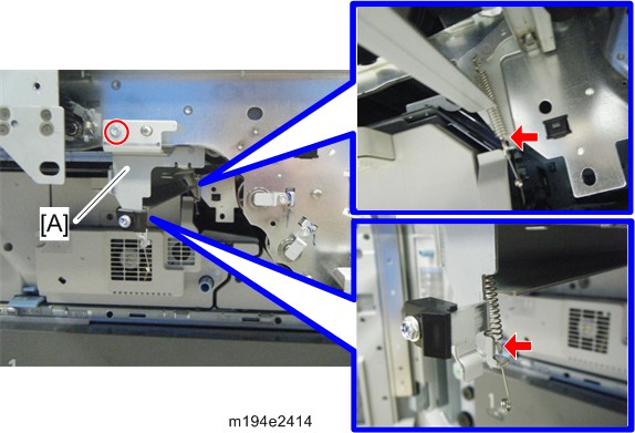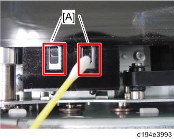 - 缓慢放低皮带张力辊组件[A], 用手托住辊的另一端。