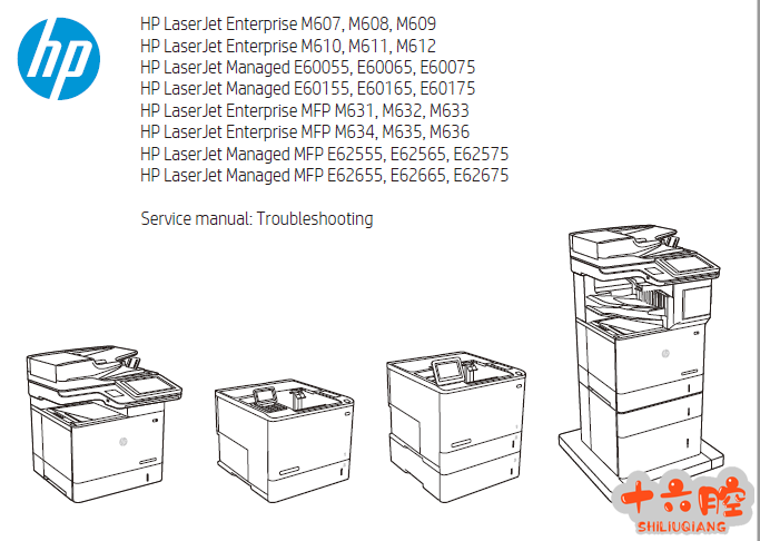 HP LaserJet Enterprise M607, M608, M609 HP LaserJet Enterprise M610, M611, M612 HP LaserJet Managed E60055, E60065, E60075 HP LaserJet Managed E60155, E60165, E60175 HP LaserJet Enterprise MFP M631, M632, M633 HP LaserJet Enterprise MFP M634, M635, M636 HP LaserJet Managed MFP E62555, E62565, E62575 HP LaserJet Managed MFP E62655, E62665, E62675 惠普M607, M608, M609,M610, M611, M612,E60055, E60065, E60075,E60155, E60165, E60175,M631, M632, M633,M634, M635, M636,E62555, E62565, E62575,E62655, E62665, E62675拆卸维修手册+故障排除手册+培训资料