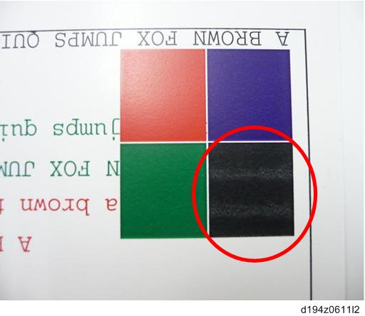 原因全彩模式纸张转印偏压高于黑白模式,黑色色粉低充电导致转印率低。如果主扫描方向文字线条靠近黑色实心图像边缘,黑色实心图像浓度会更低。 解决方法 1全彩模式增加黑色图像转印电流