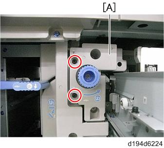 - 握住进纸皮带单元[A]的旋钮,半关闭纸盘。.