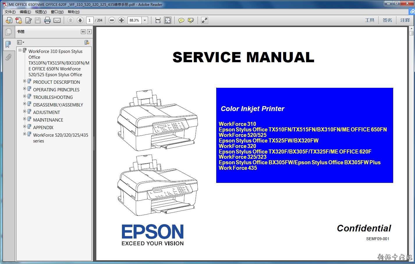 爱普生ME OFFICE 650FN 620F BX320FW BX305FW一体机英文维修手册