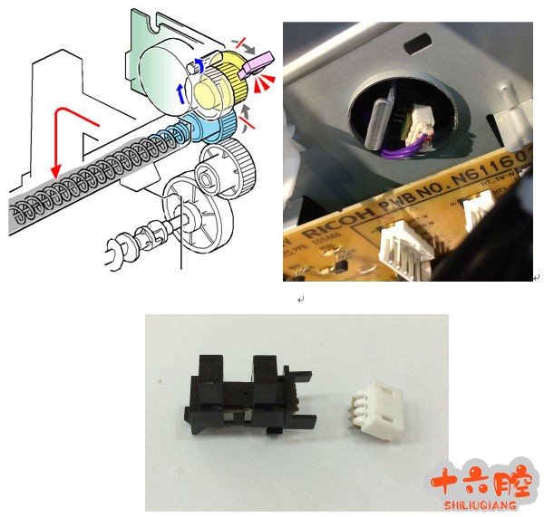 症状:基士得耶 cp6303c 机器印刷时报故障 E-02原因:1、纸台电机问题、纸台驱动不良;2、纸台高度传感器,纸台下限传感器不良;3、主板不良。4、线束接...