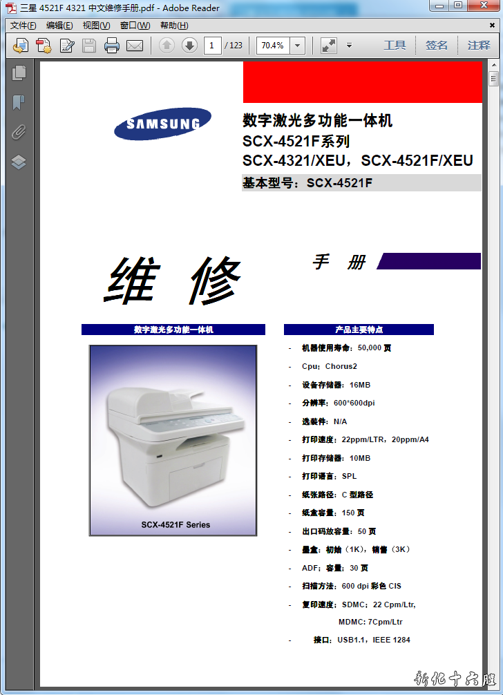 语 言:中文格 式:PDF电子版,无加密页 数:123页手册内容详实,图文并茂,是维修人员的好帮手,有了维修手册,这款机子的拆卸、故障排除您就不用再发愁了!即使是普通的用户,也可以根据维修手册解决简单的故障。