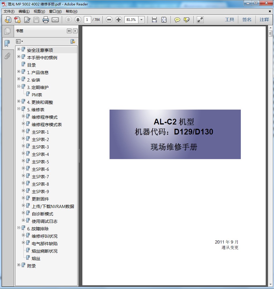 理光C9210/C9200机器代码:M0B2/M0B1系统维护C9200/C9210机器代码:M0B1-57/58、66/67、68/69M0B2-57/58、...