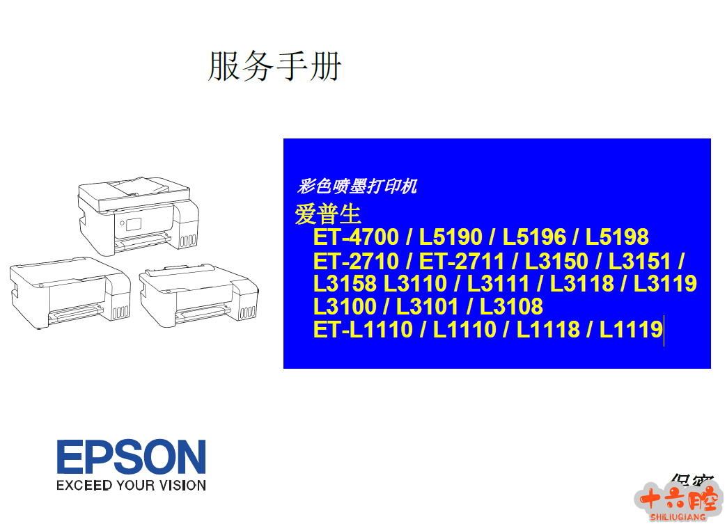 彩色喷墨打印机 爱普生 ET-4700 / L5190 / L5196 / L5198 ET-2710 / ET-2711 / L3150 / L3151 /L3158 L3110 / L3111 / L3118 / L3119/L3100 / L3101 / L3108 ET-L1110 / L1110 / L1118 / L1119中文维修手册 翻译版本