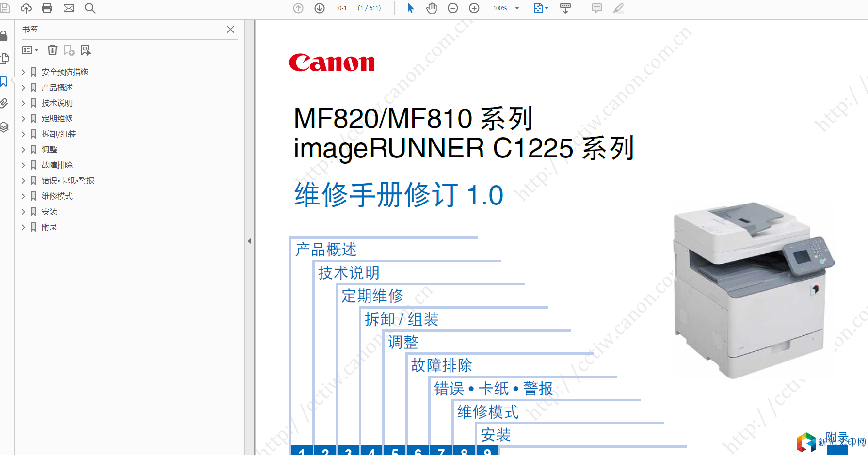 佳能 iC MF810,820Cdn,C1225中文维修手册