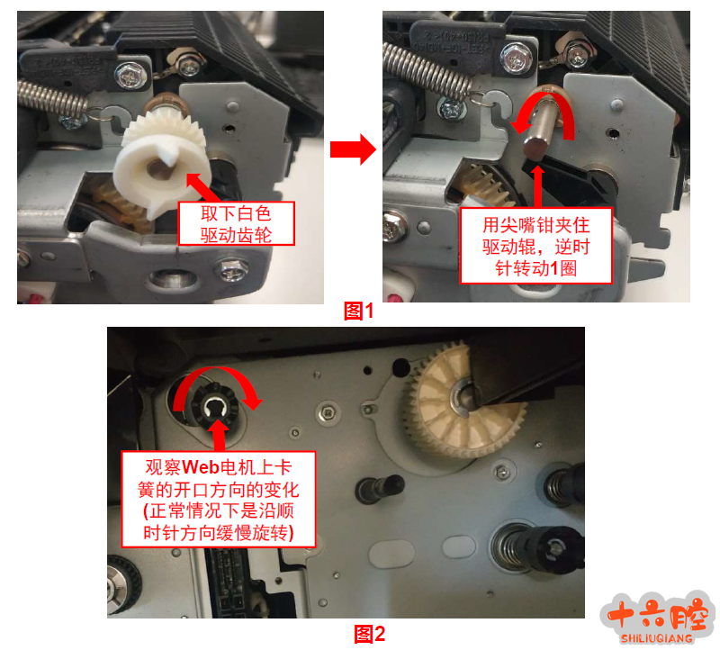概述 Volante V发生010-326故障的一种原因和解决方法。 内容 现场遇到一台Volante V的机器在更换定影器后不久发生010-326故障,查看维修手册对该故障的描述是:机器检测到定影热辊未在指定时间内达到规定的温度。 首先检查用户电源,确定正常。 接着拆开定影器,发现3个热敏电阻表面都很脏,检查发现机器驱动定影器清洁油布的Web电机(PL3.3 8Item 127K 51050)没有转动。更换Web电机,清洁热敏电阻,并用尖嘴钳夹住定影器上清洁油布的驱动轴逆时针转动一圈(见图1,为了防止新换上的电机损坏),装回定影器开机测试,故障消除。 检测Web电机时需注意,因为正常情况下Web电机转速非常慢(比钟表上的分针转速稍快),所以在DC330输入010-005运行Web电机时(不必顶上前门联锁),首先确定是否能听到电机转动的声音,其次仔细观察电机的转动,建议看上面卡簧的开口方向是否在按顺时针方向缓慢旋转(见图2)。为便于观察,建议将定影器取下,千万别顶上前门联锁,否则机器会报010-311故障。