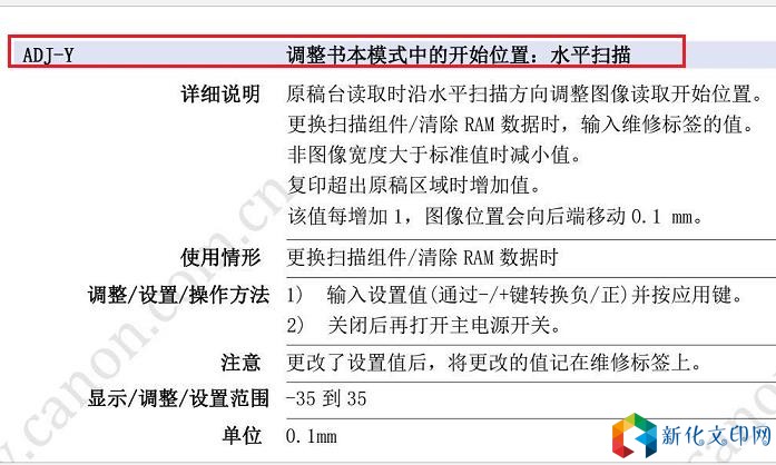 [故障原因] 书本模式下的水平扫描开始位置不正确。 [维修措施] 调整维修模式中关于书本模式下的水平扫描开始位置的选项。 Copier>Adujst>ADJ-Y