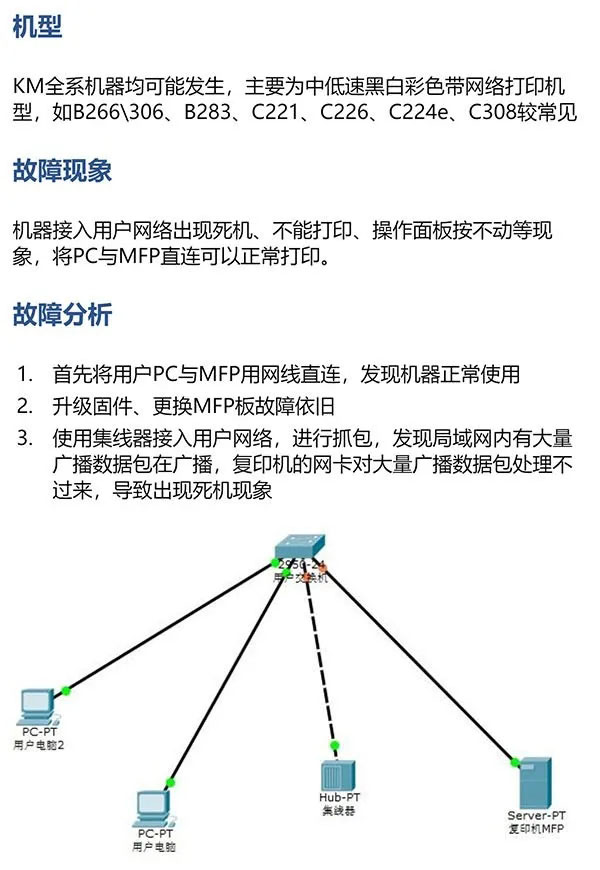 柯美MFP接入网络死机、面板按不动