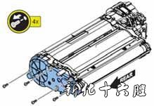 维修工作 当出现以上故障时,准备并更换新型号齿轮支架(FM1-B413-010)。新型齿轮架是原因a)引起此故障的解决方法。 a) 更换齿轮架 a-1)参考维修手册拆下显影器。 a-2)参考维修手册拆下齿轮架,然后更换新型号的齿轮架。