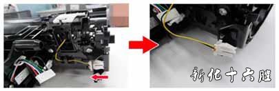 b-2) 断开连接器 向箭头方向推连接器,然后从支架上释放它。