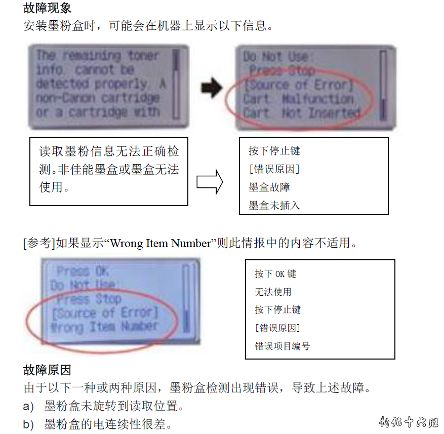 产品型号: imageRUNNER1435 imageRUNNER1435IF 故障现象 安装墨粉盒时,可能会在机器上显示以下信息。