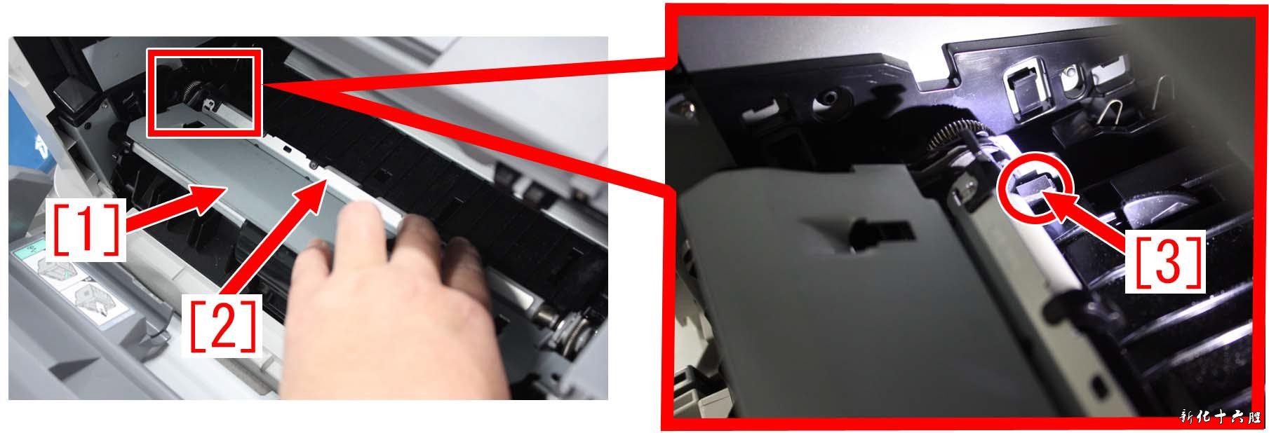 3 ) 打开钣金【1】和对位快门【2】,在打开的状态下用手按压。左内侧有对位阻尼【3】。