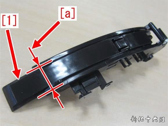 6) 以相反的顺序将从步骤5)开始拆下的零件重新装回。 [工厂对策] 通过修改托盘辅助导轨前缘[a]的尺寸,防止副导轨[1]被卡住。
