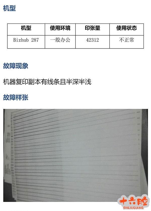 柯美BH278复印偶尔有线条且半深半浅