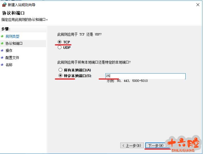 7、 添加TCP 25 端口(案例中设置的是默认的SMTP 端口,此处因以客户处实际端口为准);