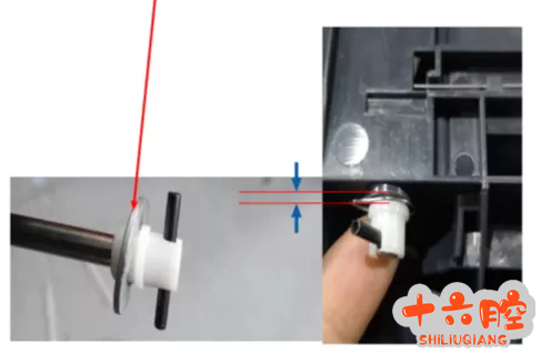 故障现象: 机器新装机,当1纸盒装满纸张,纸盒摧入机器后,机器提示代码0202并伴有异响,当纸张少时,纸盒摧入纸机,机器又能正常使用。 故障解决:抽出第一纸盒,在纸盒的后端提升驱动板轴套和纸盒中间用自制垫片或回形针缠绕1圈。缩小纸盒和驱动销间距,增大纸盘提升效率,解决代码的出现。