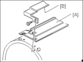 版纸已移动,执行第四步4. 用酒精擦拭并清洁夹具[B]和夹具基座 [A] ,去除堆积的纸屑。 重要: 不要擦拭夹具基座的砂纸部分。 不要用就近擦拭 C262/C265之前的机器。这些机器用湿布擦拭即可。