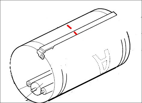 [症状]图像向尾端移动。 [原因]纸削堆积在版纸夹,夹具基座允许版纸向尾端滑动。[解决方法]1. 创建一张新版纸,拆除滚筒,作如图所示标记。