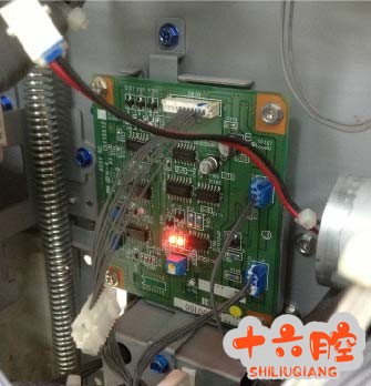1. 打开机器后盖板,翻开主控板露出防双进纸传感器调整电路板,确认对位辊下方没有纸张后打开电源,此时LED101 和LED102 都不应点亮,如此时亮起则需更换防双进纸传感器。