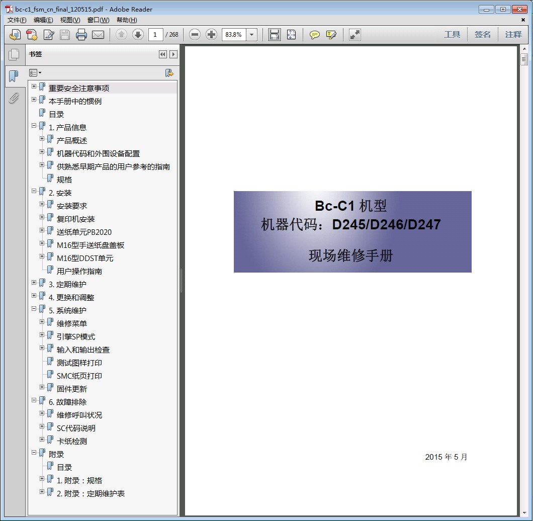 理光 MP 2014 2014AD 2014D 2014en 基士得耶DSm 1120_1120D_1120AD中文维修手册语 言:中文格 式:PDF电子版,无加密页 数:268页手册内容详实,图文并茂,是维修人员的好帮手,有了维修手册,这款机子的拆卸、故障排除您就不用再发愁了!即使是普通的用户,也可以根据维修手册解决简单的故障。