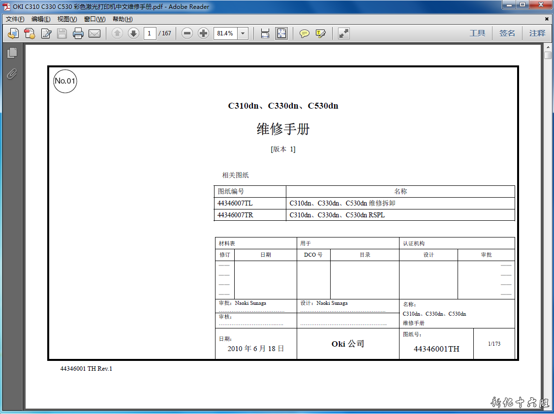 四通 OKI C310 C330 C530 彩色激光打印机中文维修手册 零件手册