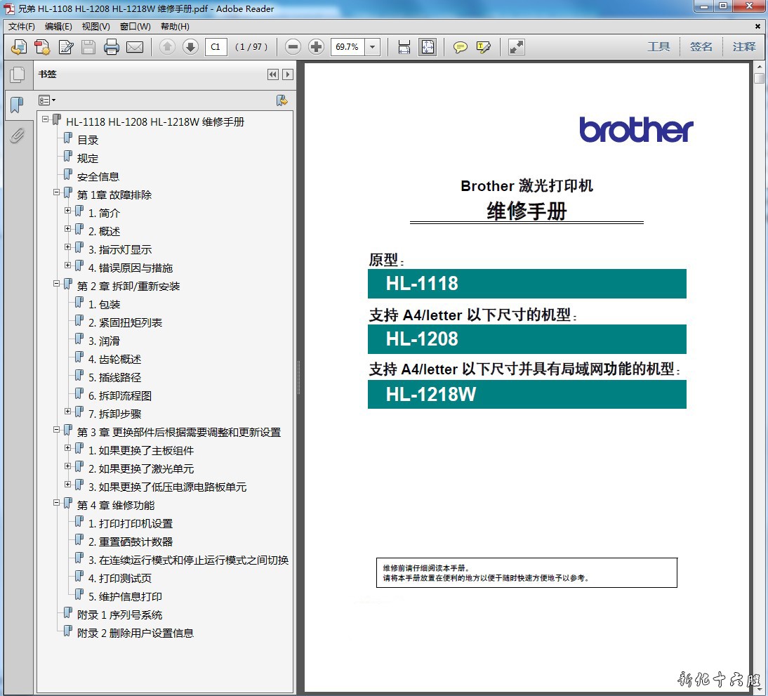 语 言:中文格 式:PDF电子版,无加密页 数:97页手册内容详实,图文并茂,是维修人员的好帮手,有了维修手册,这款机子的拆卸、故障排除您就不用再发愁了!即使是普通的用户,也可以根据维修手册解决简单的故障。