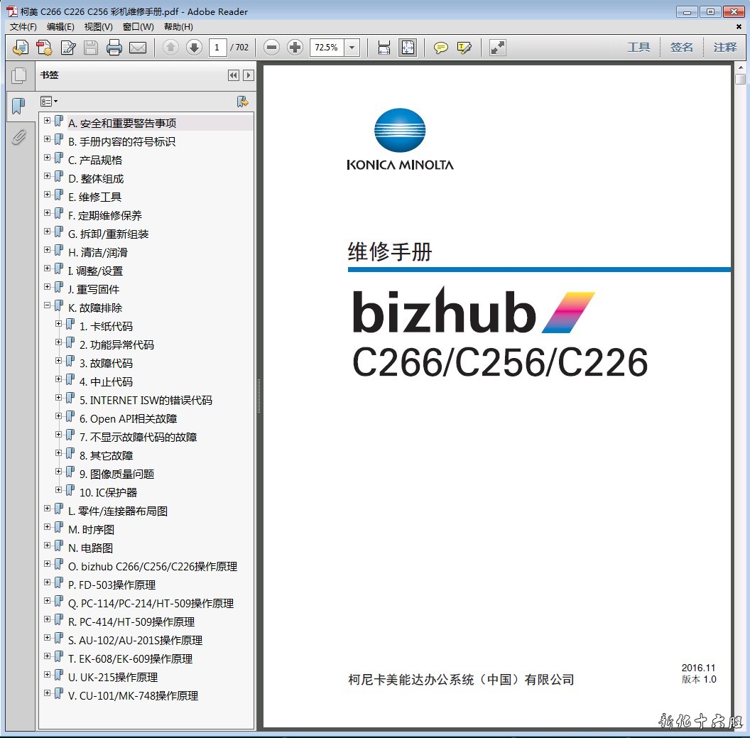 施乐Apeos 2560_3060_3560中文维修手册1.1版本