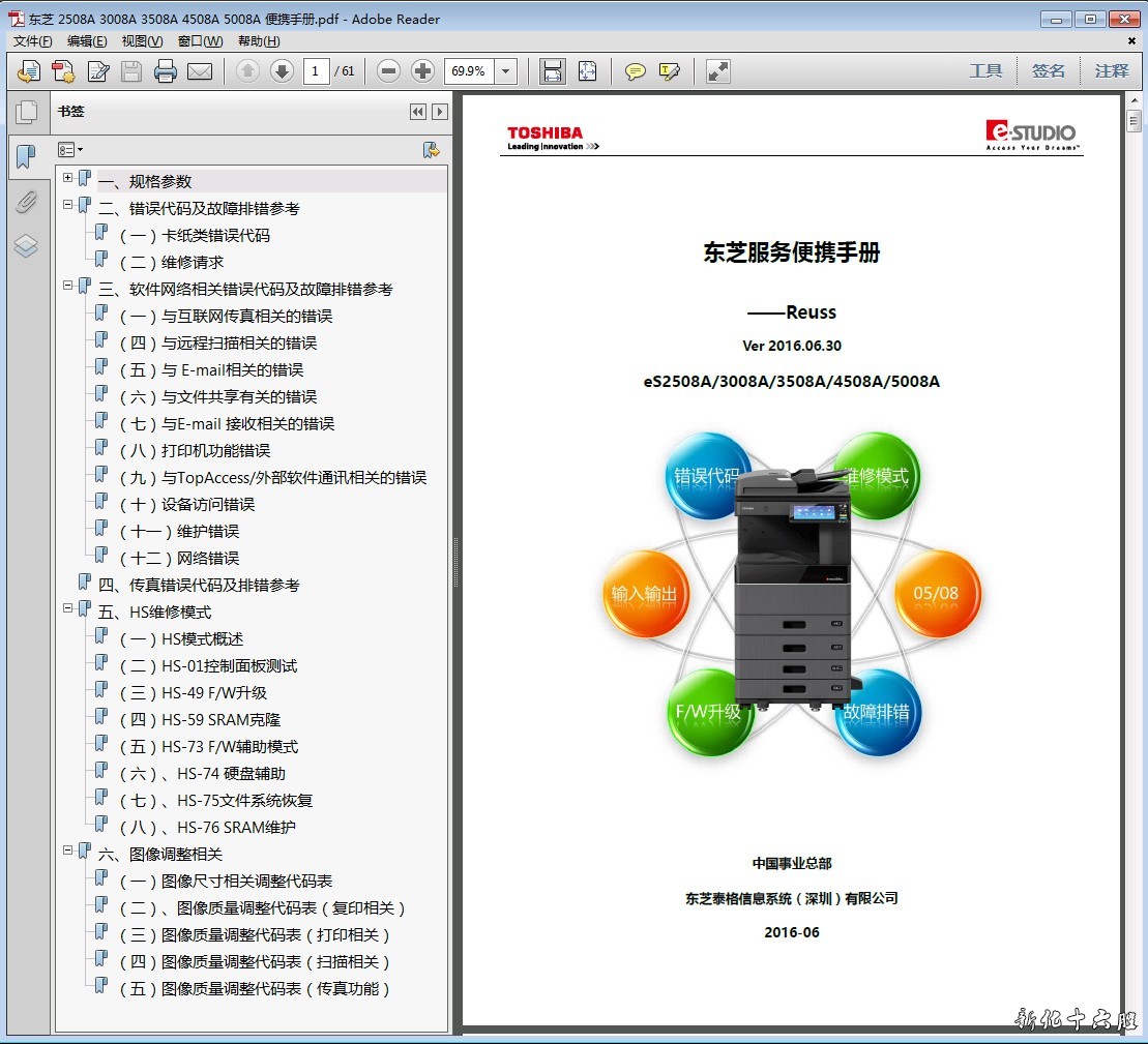 语 言:中文格 式:PDF页 数:61页东芝es 2508A 3008A 3508A 4508A 5008A 复印机便携中文维修手册链接:https://pan.baidu.com/s/1du6l9tDZ4dVX2kqi5o75zg 密码:zbrf链接:https://pan.baidu.com/s/1dP4HHXvhTfi5kwSoRmdFYQ 提取码:npz3 链接:https://pan.baidu.com/s/1UEvoKNKnBCHDOtsDclKu8g&shfl=sharepset 提取码:3msz |