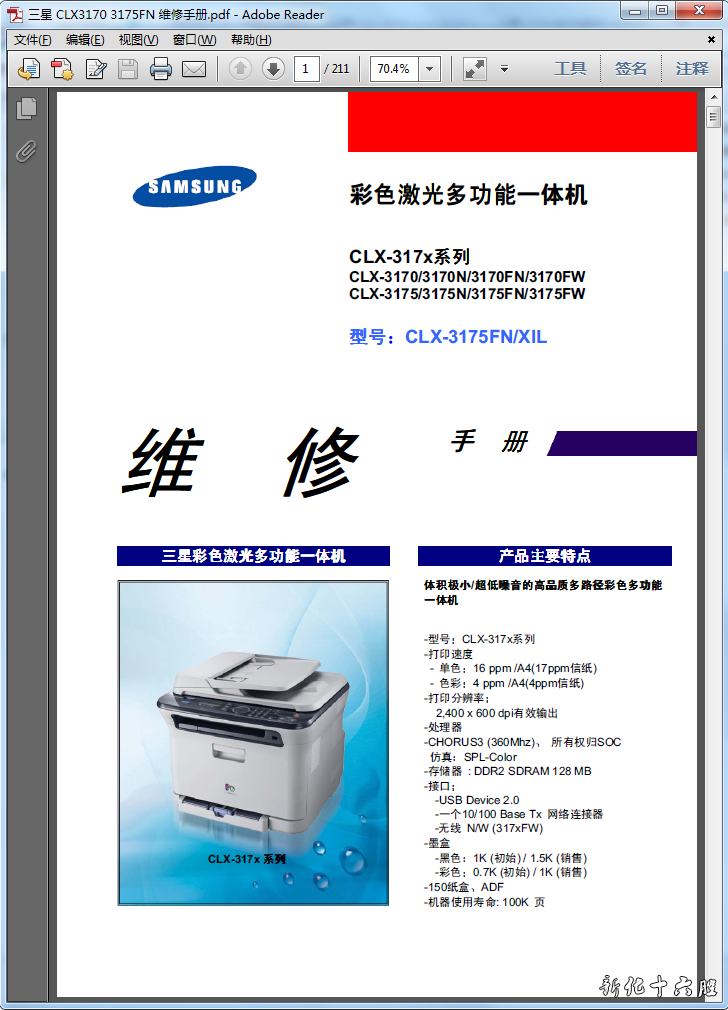 语 言:中文页 数:211页格 式:PDF电子版,无加密手册内容详实,图文并茂,是维修人员的好帮手,有了维修手册,这款机子的拆卸、故障排除您就不用再发愁了!即使是普通的用户,也可以根据维修手册解决简单的故障。