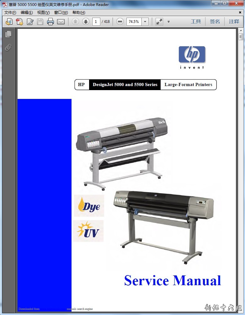 惠普 HP DesignJet 5000 5500 大幅面绘图仪 出图仪 英文维修手册