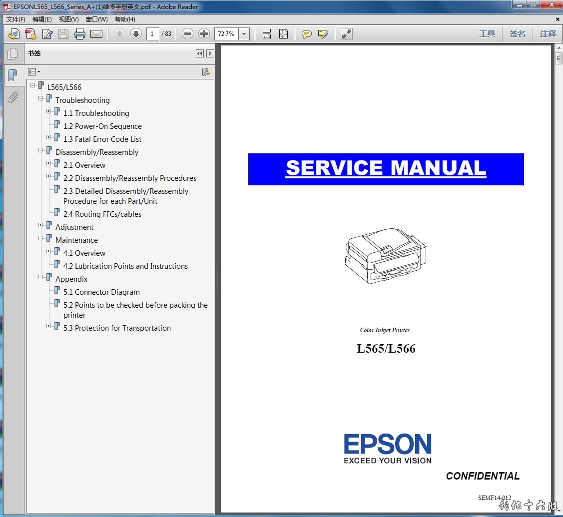 语 言:英文页 数:83页格 式:PDF无加密手册内容详实,图文并茂,是维修人员的好帮手,有了维修手册,这款机子的拆卸、故障排除您就不用再发愁了!即使是普通的用户,也可以根据维修手册解决简单的故障。