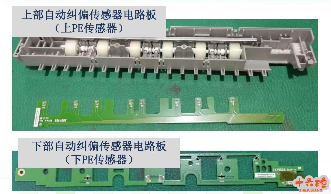 EPSON 30K 自动纠偏传感器检查分析 1、作用: 上部自动纠偏传感电路板,在前部走纸单元上PE 传感器板上的发光二极管(X8) 下部自动纠偏传感电路板,在外壳下PE 传感器板上的光接收器(X8) 自动纠偏装纸检测插入纸张对齐的完成、纸张下端的有无、以及退纸的完成。 2、实物结构: