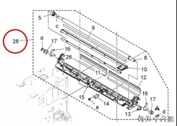 <现场对策> 2.可以单独更换对位辊导纸胶片 第12号零件:A8A1701500/ Guide Sheet。 第26号零件:A8A1703600/ Guide Sheet。