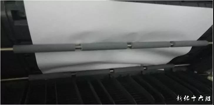 <原因分析> 拆下对位辊后,发现对位辊导纸胶片已经磨损,打印双面的纸张在第一次定影后,出现纸头蜷曲,纸张在双面单元翻转后,走到这个位置就顶住纸头。