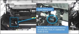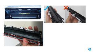 解决方案: – 检查加热组件的安全门是否处于错误位置,调整安全门到正确位置。 – 安全门(挡板)说明:当用户打开硒鼓仓时,为了避免用户接触到加热组件,造成烫伤,在加热组件的进纸口,均设计了挡板,当打开硒鼓门时,此挡板关闭,从而避免用户接触到加热组件。
