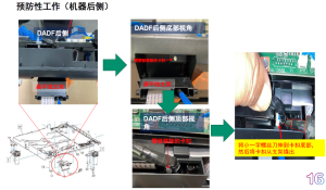 概要 本公告介绍了配有最新款 DADF130 机型出 062-277 故障( IPS DADFCommunication Fail )的一种可能性和对策方案。 故障原因 部分配置 DADF130 的机器, 输稿器 在打开闭合过程中, DADF 与 ESS 之间的通讯线束(如右侧图 1 所示)会被拉扯到,当开合次数越来越多后,线束可能会断裂 电阻变大 接触不良等现象,从而导致偶发性 062 277 通讯故障的出现。