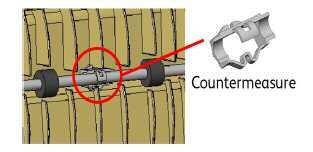 临时解决方案(当没有拿到对策零件时) 换上Botan High用的L/H Cover,零件号: 859K 15490, 并更改NVM741-113(L/H风扇on/off) 把默认值2改成0,打开L/H 风扇。 对策 1、为了保证L/H Cover跟双面辊2之间的间隙,导入了一个垫环,安装了这个对策件以后,将解决L/H异响的现象。见图二 2、FX-R&D正在准备这个对策件