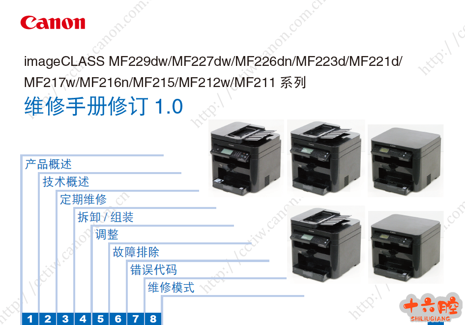 佳能 imageCLASS MF211 MF212w MF215 MF216n MF217w MF221d MF223d MF226dn MF227dw MF229dw 中文维修手册