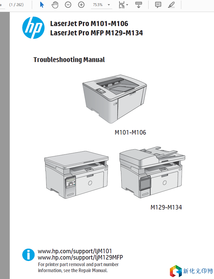 HP/惠普 M104 M106 M132 M134 激光打印机英文维修手册+拆机手册语言:英文维修手册+英文拆机手册格式:PDF